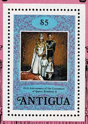エリザベス女王戴冠25周年記念 少年チャールズ国王 切手小型シート アンティグア・バーブーダ発行