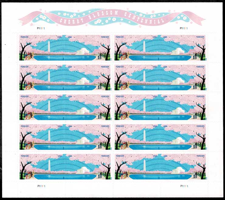 2012年 桜寄贈100年記念 切手シート アメリカ合衆国発行(シール式)