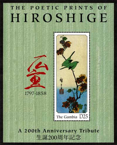 歌川広重生誕200周年記念 「紅葉の枝にメジロ」切手小型シート ガンビア発行
