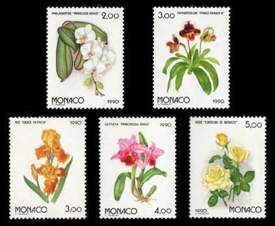 1990年 国際花と緑の博覧会 王室メンバーの名前が付けられた花切手 5種セット モナコ発行