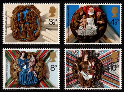 1974年 教会屋根の装飾 クリスマス切手4種セット イギリス発行