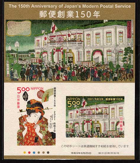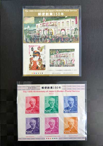 郵便創業150年切手帳(特別版) 500円切手小型シート2枚組