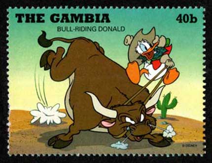 1995年 ディズニー切手 カウボーイとアメリカ先住民 6種セット ガンビア発行