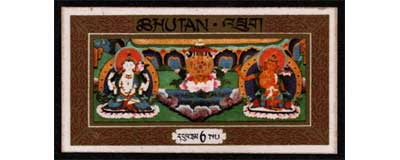 1969年 チベット仏教のタンカ(掛軸) 蓮華座に座る2人の古仏 シルク製切手 ブータン発行