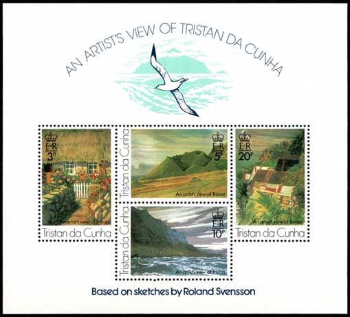 ローランド・スヴェンソンによるトリスタンの風景画 切手小型シート イギリス領セントヘレナ・アセンションおよび トリスタンダクーニャ発行