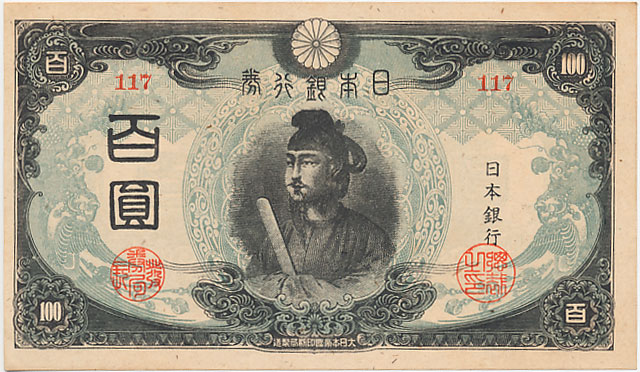 図案:表 聖徳太子、裏 法隆寺