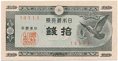ハト10銭 (日本銀行券A号10銭) 未使用
