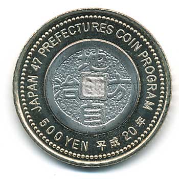 地方自治法施行60周年記念500円バイカラー・クラッド(新潟県) 日本貨幣カタログ番号:07-105 直径:26.5mm 品位:銅750/亜鉛125/ニッケル125 量目:7.1g 発行:平成21年7月15日 発行数:1,840,000枚 図案:トキのつがいと棚田の風景 状態:未使用