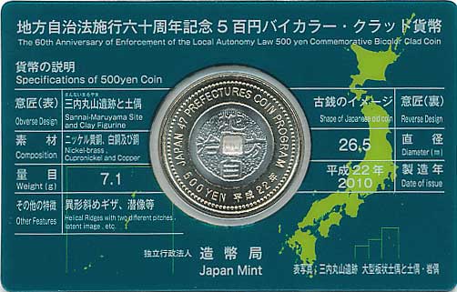 地方自治法施行60周年記念500円バイカラー・クラッド カード型ケース入り(青森県)