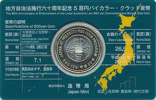 地方自治法施行60周年記念500円バイカラー・クラッド カード型ケース入り(佐賀県)