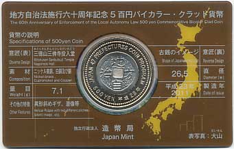 地方自治法施行60周年記念500円バイカラー・クラッド カード型ケース入り(鳥取県)