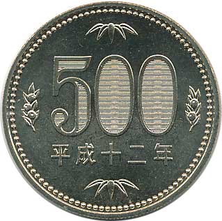 日本貨幣カタログ番号:02-1A 品位:銅720/亜鉛200/ニッケル80 量目:7g 直径:26.5mm 発行枚数:595,969,000枚 状態:未使用